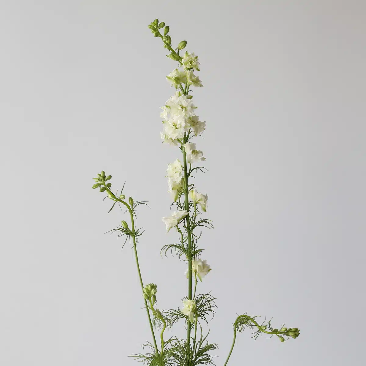 Enhance your floral arrangements with the graceful Delphinium Larkspur White, also available in, Pink, and Mauve. Known for its tall stems and delicate blooms, this versatile flower is ideal for bouquets, centerpieces, and event decor. Standing approximately 80 cm tall, its soft, romantic hues bring elegance and charm to any DIY floral project or seasonal arrangement. Available in bulk options of 10, 30, 60, 90, or 120 stems, Delphinium Larkspur adds a timeless touch to your creations. To guarantee availability, please place your order at least 2 weeks in advance.