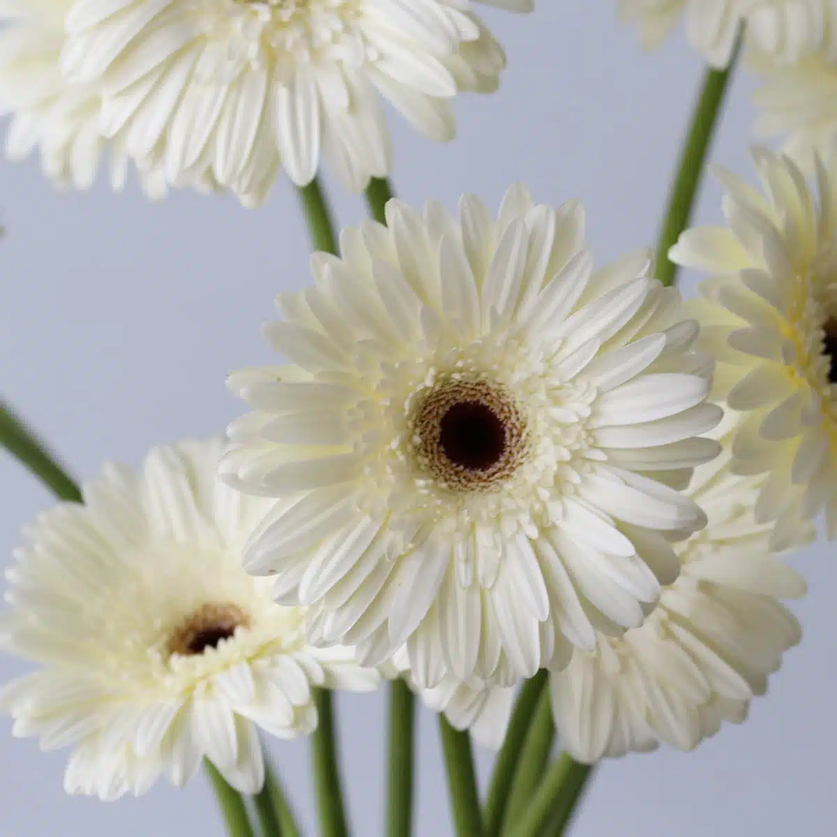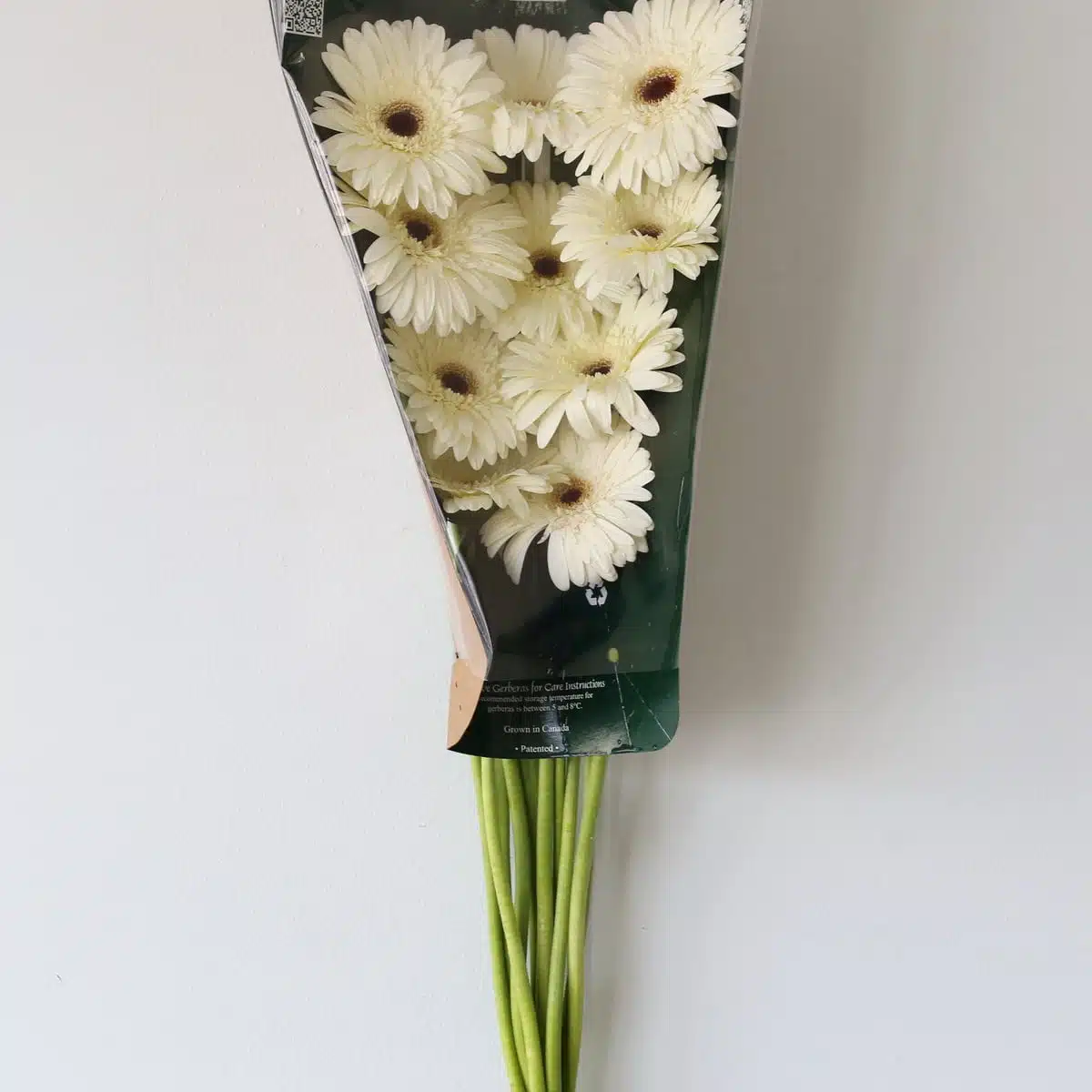 Add a touch of beauty with our locally grown white Gerbera flowers, perfect for your DIY floral arrangements. These stunning round shaped flower, ranging from 22 to 24 inches in height, are ideal for creating your own bouquets, centerpieces, and floral decorations. Get fresh and ready to use gerberas delivered right to your doorstep.
